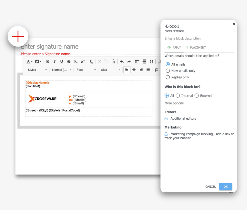 Crossware simplifies email signature management, offering centralized control and dynamic functionality: